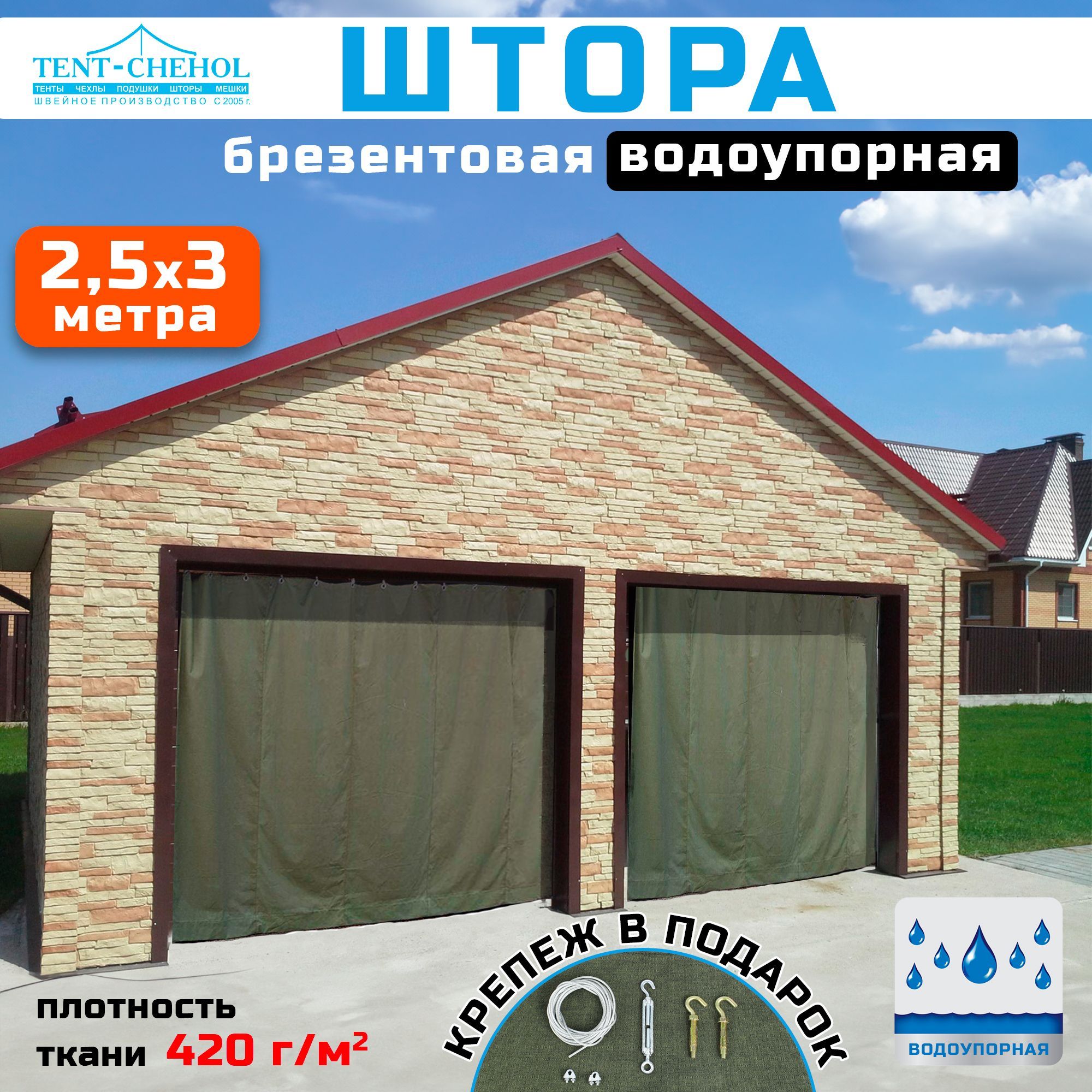 Краткое описание «Брезентовая штора водоупорная для гаража, высота 250 см, ширина 300 см»