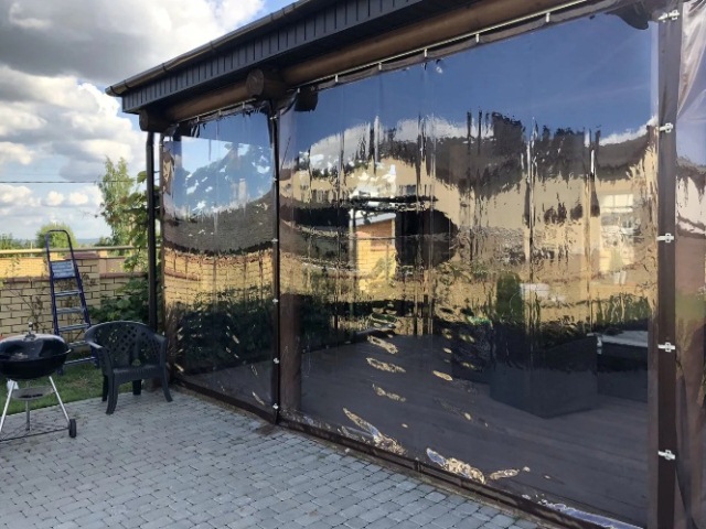 Мягкое стекло может быть не только абсолютно прозрачным, но еще и тонированным. Оно очень пластичное, стойкое к разнообразным повреждениям, эластичное. Его легко согнуть, закрутить рулон. При этом оно не испортится. Используют его для того, чтобы остеклить как согнутые, так и стандартные конструкции коттеджей, а также в частных домах.